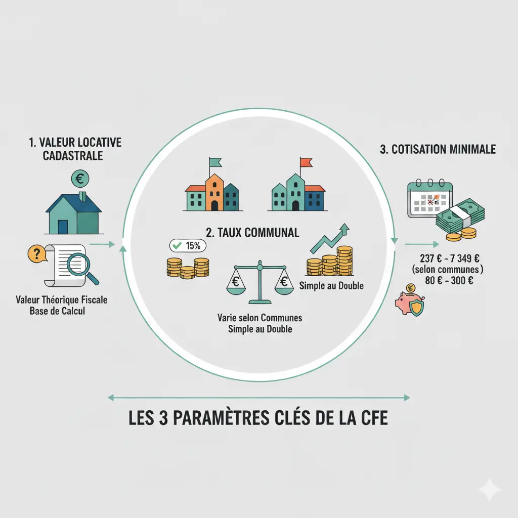 Chaque commune fixe librement son taux de CFE. Une commune peut décider d’un taux à 15% quand sa voisine applique 30%. Résultat : deux biens identiques situés à 10 km l’un de l’autre peuvent avoir des CFE du simple au double.
