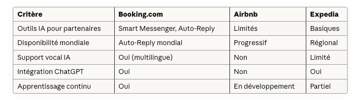 Ce qui distingue Booking.com, c’est son approche bidirectionnelle : outils d’IA pour les voyageurs ET pour les partenaires. Cette stratégie crée un écosystème cohérent où chaque amélioration d’un côté renforce l’expérience de l’autre.