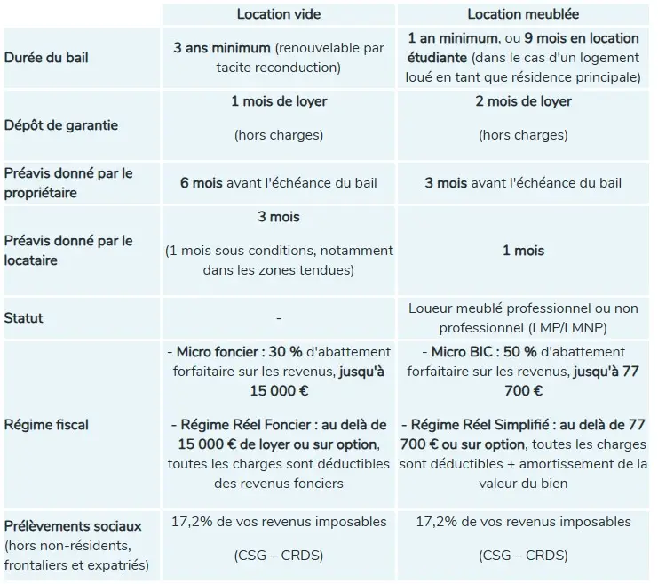 Location nue vs location Meublée