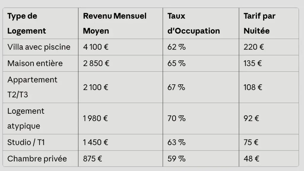 Tous les biens immobiliers ne se valent pas sur Airbnb. Les revenus varient drastiquement selon le format du logement, sa surface et son positionnement. Voici le classement détaillé des performances par type de bien en France :